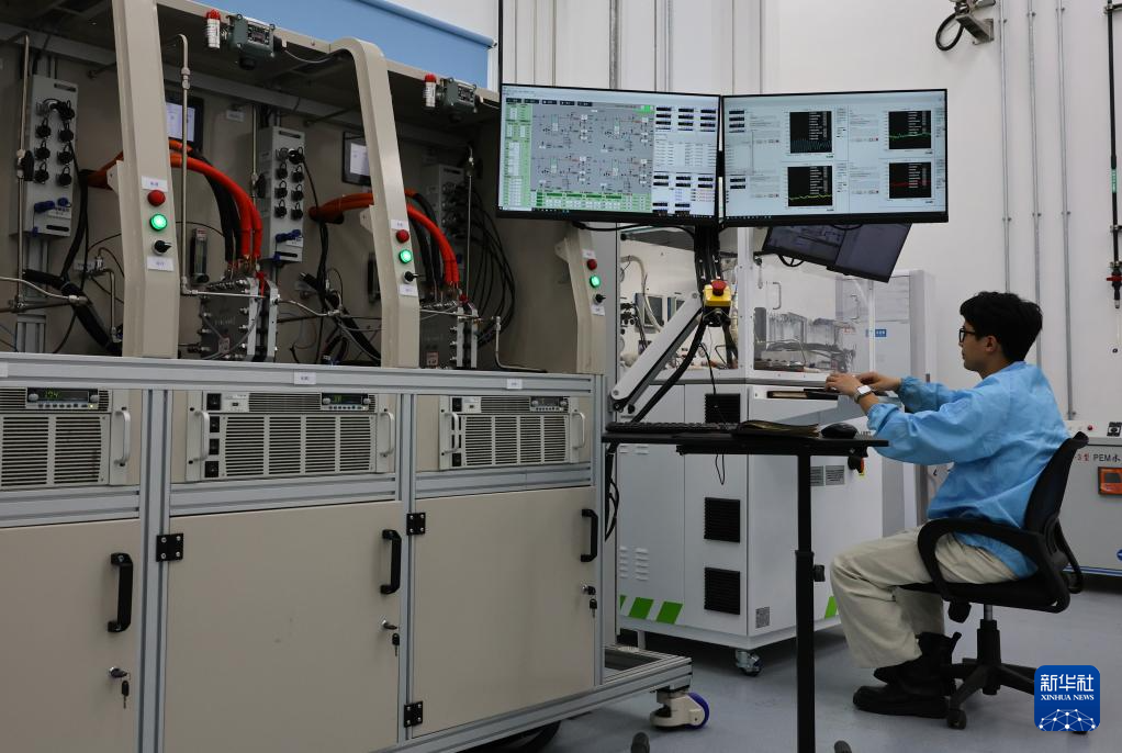 技术人员在上海氢器时代科技有限公司的光储研发中心工作(4月24日摄)。