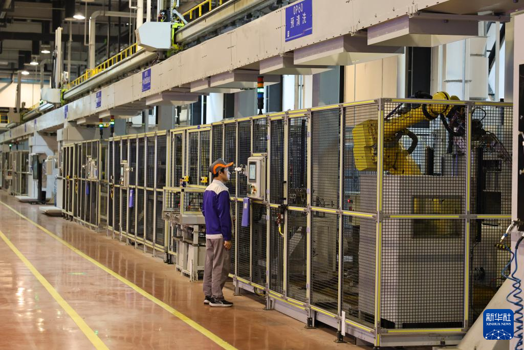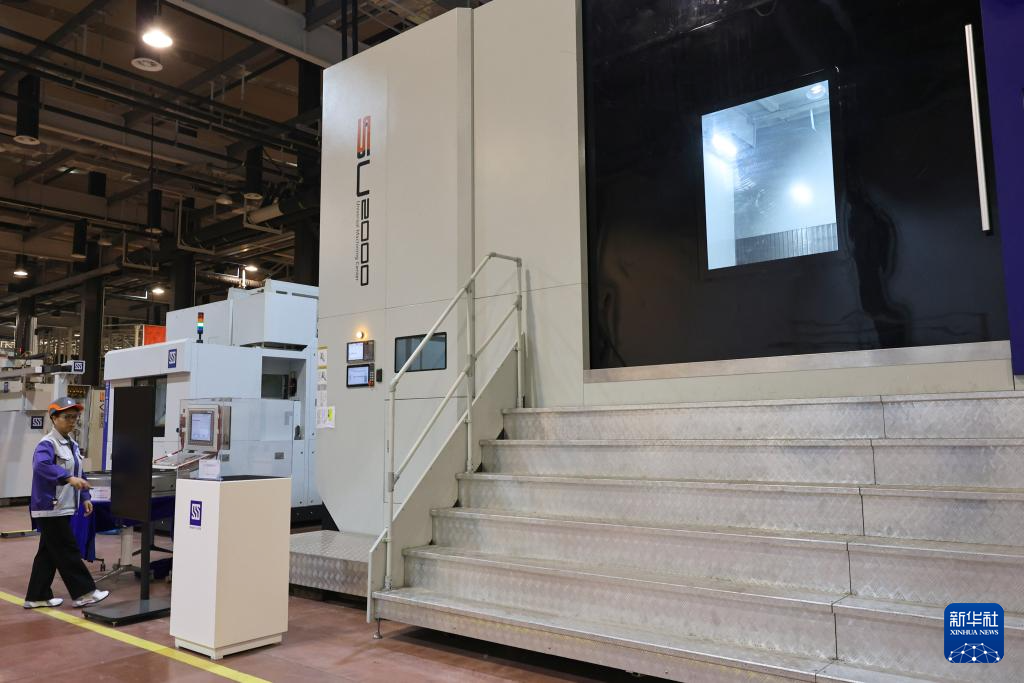 技术人员在上海交大智邦工业母机与智能制造共性技术中试验证基地内工作(4月15日摄)。该公司起源于上海交通大学,是一家高端装备与工业软件制造与集成服务商,已有员工约200人,研发人员占比超50%。公司通过建成国家首个汽车动力总成装备中试验证基地、航发装备工艺验证“先行先试”专项以及各类尖端镗铣及五轴加工中心的研制,实现了用户端的示范应用以及市场化推广。