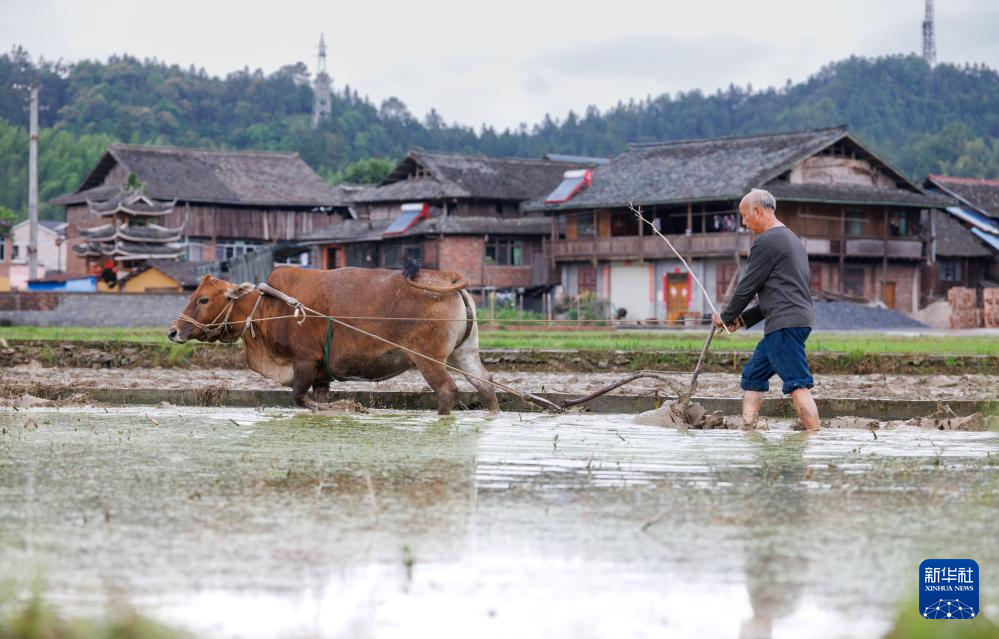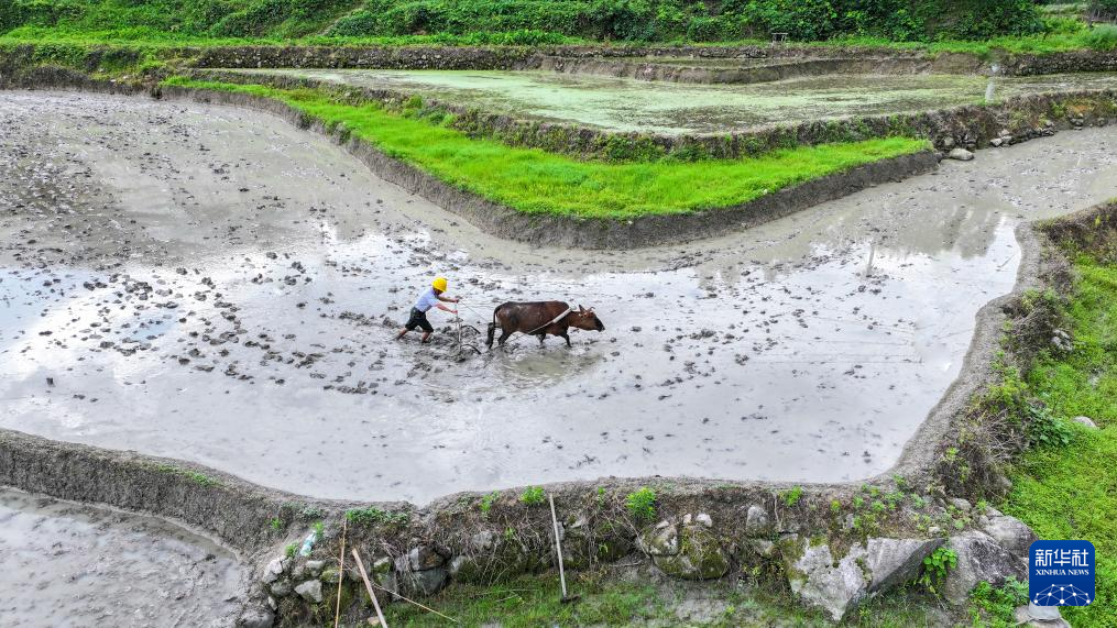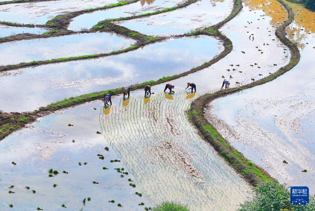 5月21日,湖南省怀化市通道侗族自治县双江镇马龙村农民在田间耕作。