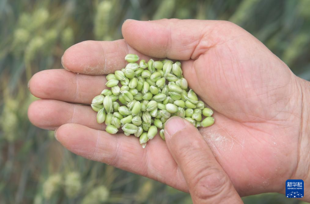 5月21日,农户在云南省丽江市玉龙纳西族自治县黄山街道的麦田里查看小麦长势。