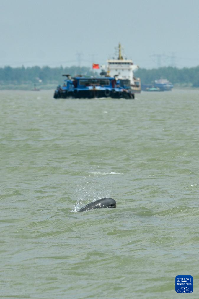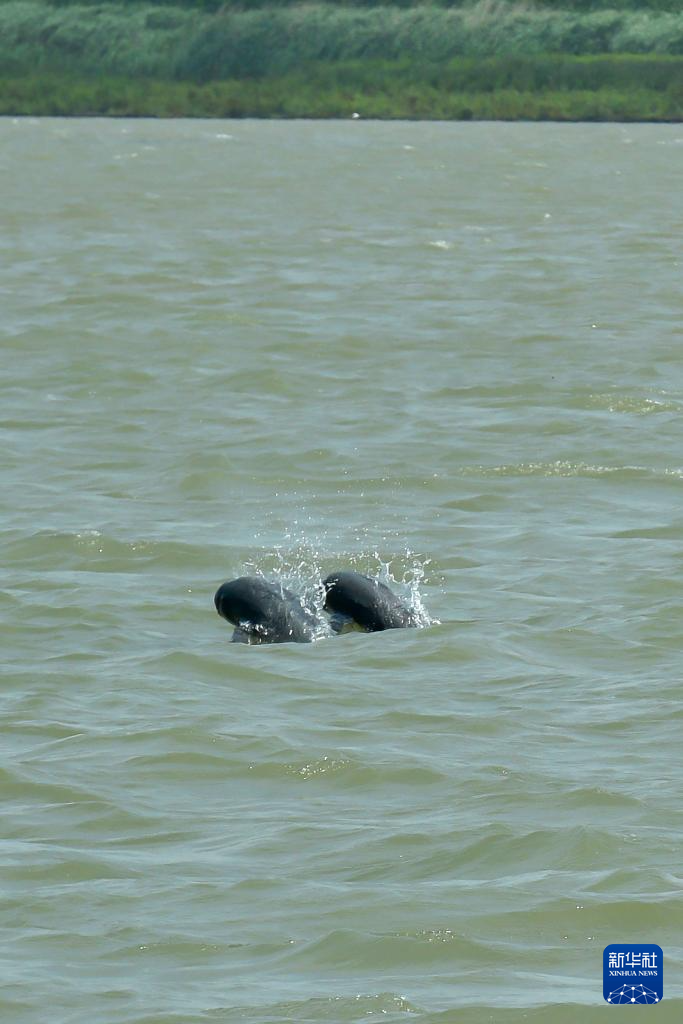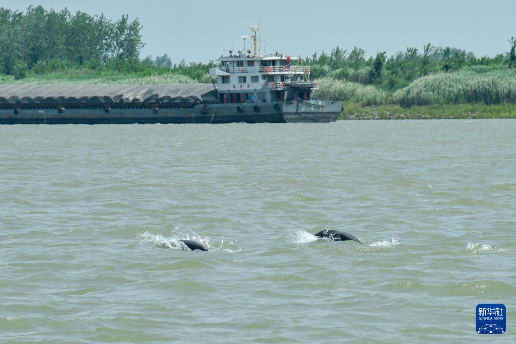 当日,在安徽省铜陵市义安区胥坝乡附近的长江江面上,多头野生江豚在江面上不时跃出水面,与浪花共舞。近年来,当地实施系统性生态修复,长江江豚数量稳中有升。