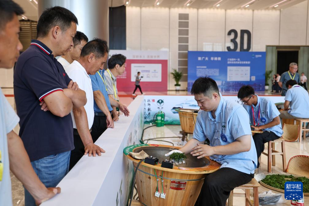 5月21日,观众在2025年浙江省龙井茶炒制技能大赛现场参观。