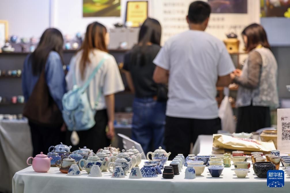 5月21日,观众在第七届中国国际茶叶博览会现场挑选茶器。