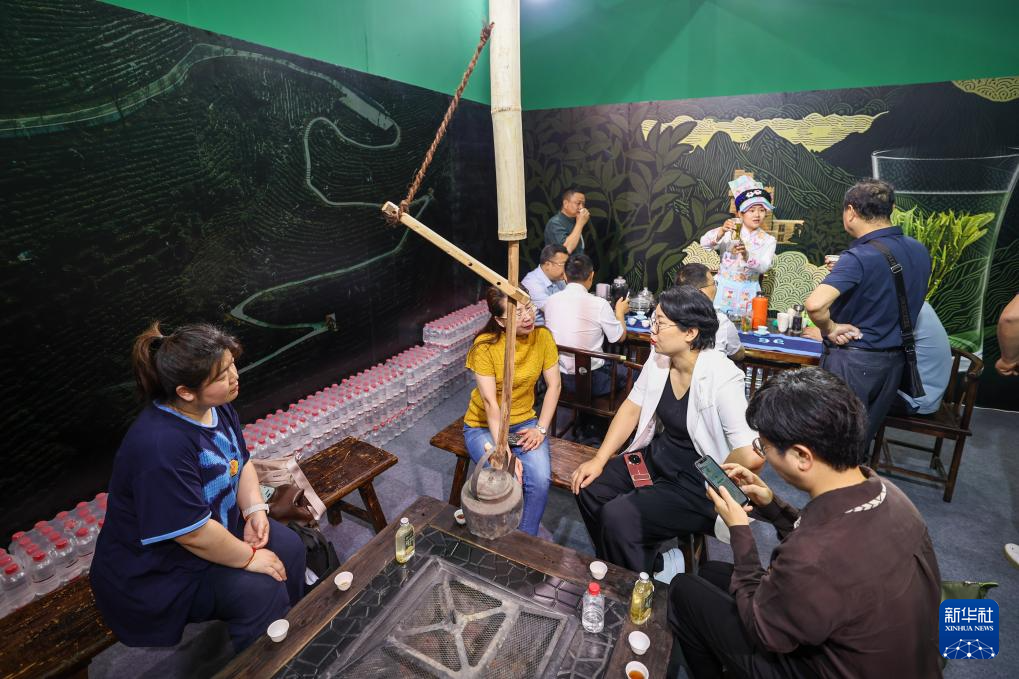 5月21日,观众在第七届中国国际茶叶博览会北川苔子茶展区品茶。