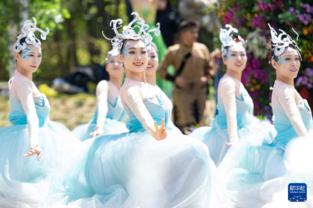 5月22日,演员在伊春市溪水国家森林公园举行的2025年国际生物多样性日宣传活动现场表演。