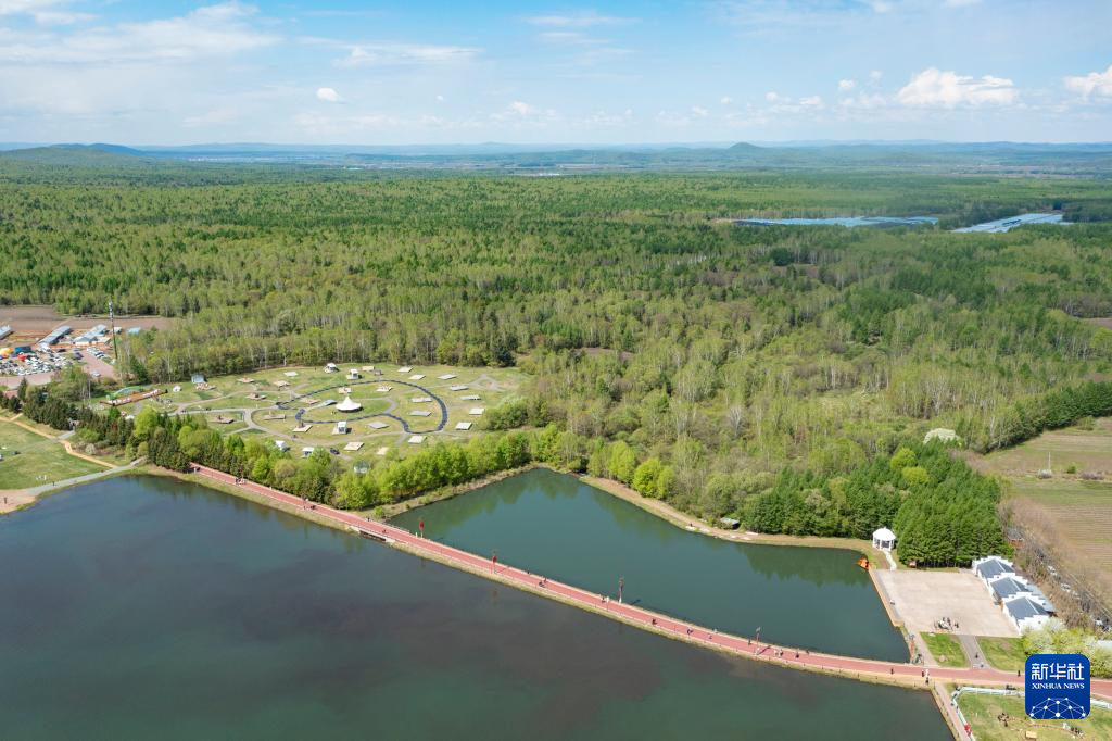 这是5月22日拍摄的伊春市溪水国家森林公园夏日风光(无人机照片)。