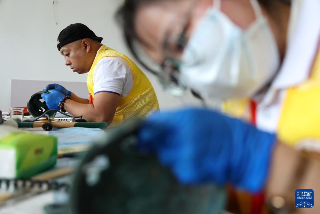 5月22日,来自新疆维吾尔自治区博物馆的参赛选手刘子虔在金属文物修复比赛中。