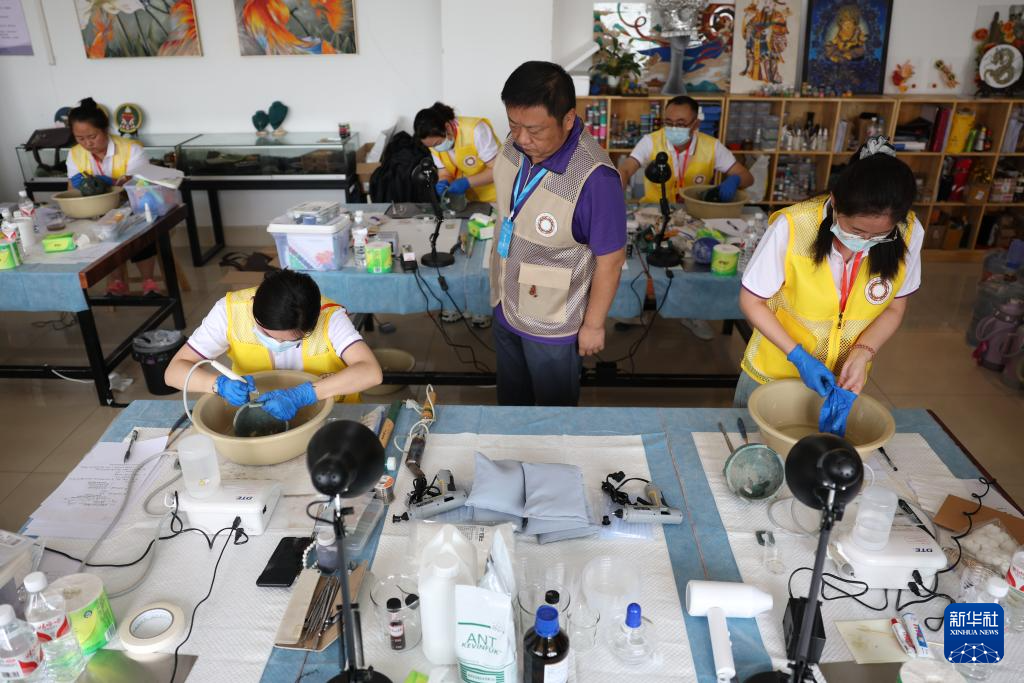 5月22日,来自青海省文物考古研究院的参赛选手严明圣在陶瓷文物修复比赛中。