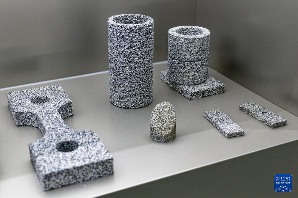 这是5月24日在山东省日照市高新区一鸣新材料科技有限公司拍摄的泡沫铝板样品。