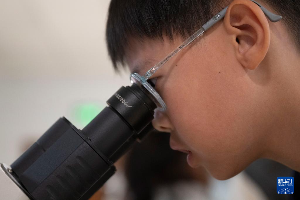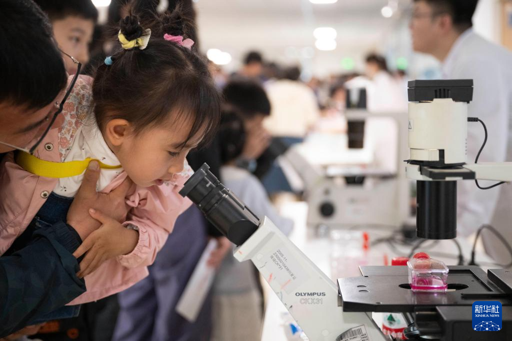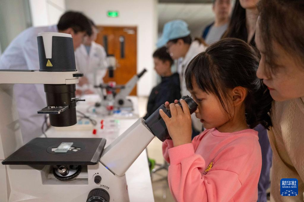 5月24日,在中国农业科学院哈尔滨兽医研究所,孩子们现场体验实验设备。