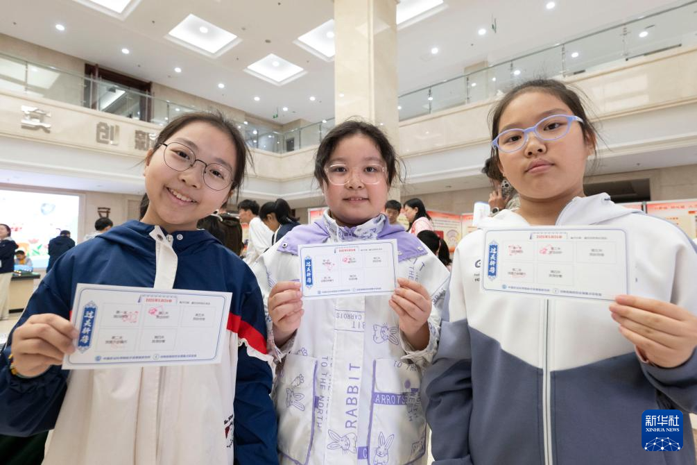 5月24日,在中国农业科学院哈尔滨兽医研究所,孩子们展示获得的活动印章。