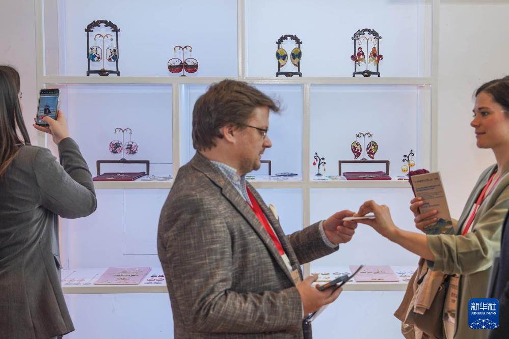 5月23日,人们在匈牙利布达佩斯参观中国非遗旅游文创展。
