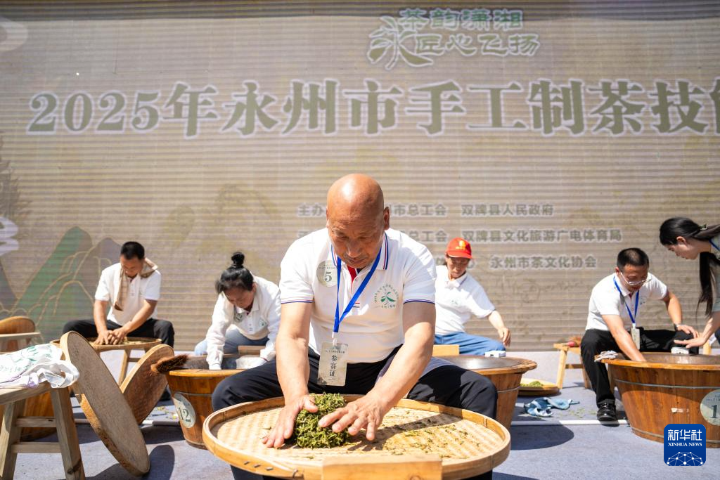 当日,湖南省永州市总工会与永州市双牌县人民政府在双牌县青龙岩景区举办2025年永州市手工制茶技能大赛。大赛进行了手工制作绿茶的技艺比拼,力求推动当地手工制茶工艺的传承和创新。