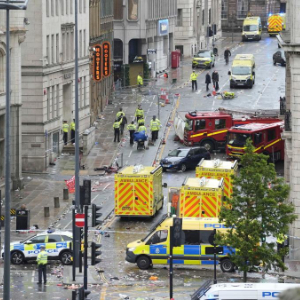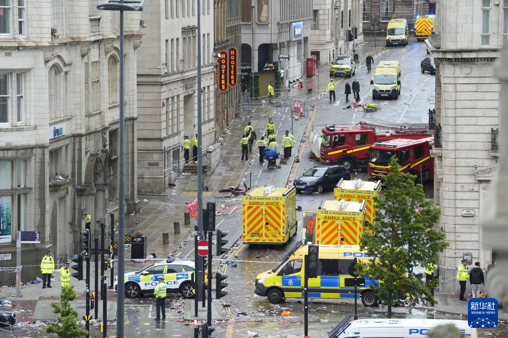 5月26日,警察和应急人员在英国利物浦的汽车冲撞事件现场工作。