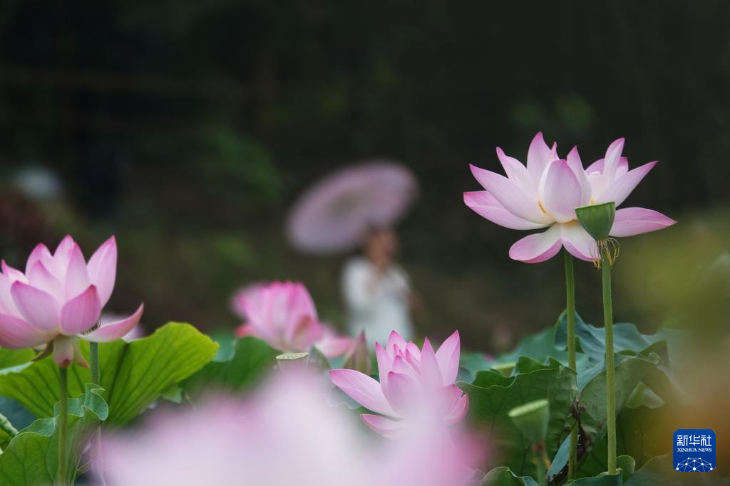 5月26日,游人在广西南宁市狮山公园的荷塘赏荷。
