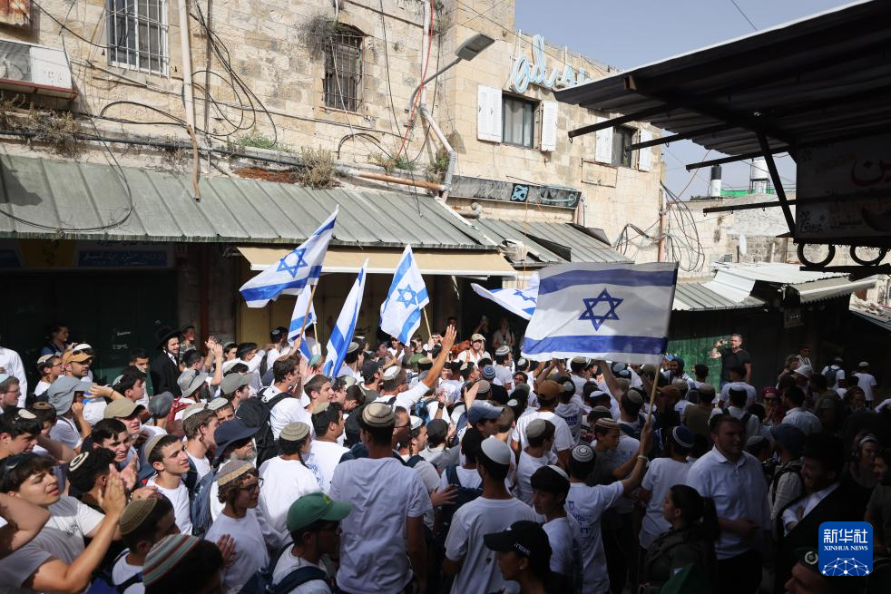 5月26日,以色列极右翼人士在耶路撒冷老城参加“耶路撒冷日”游行。