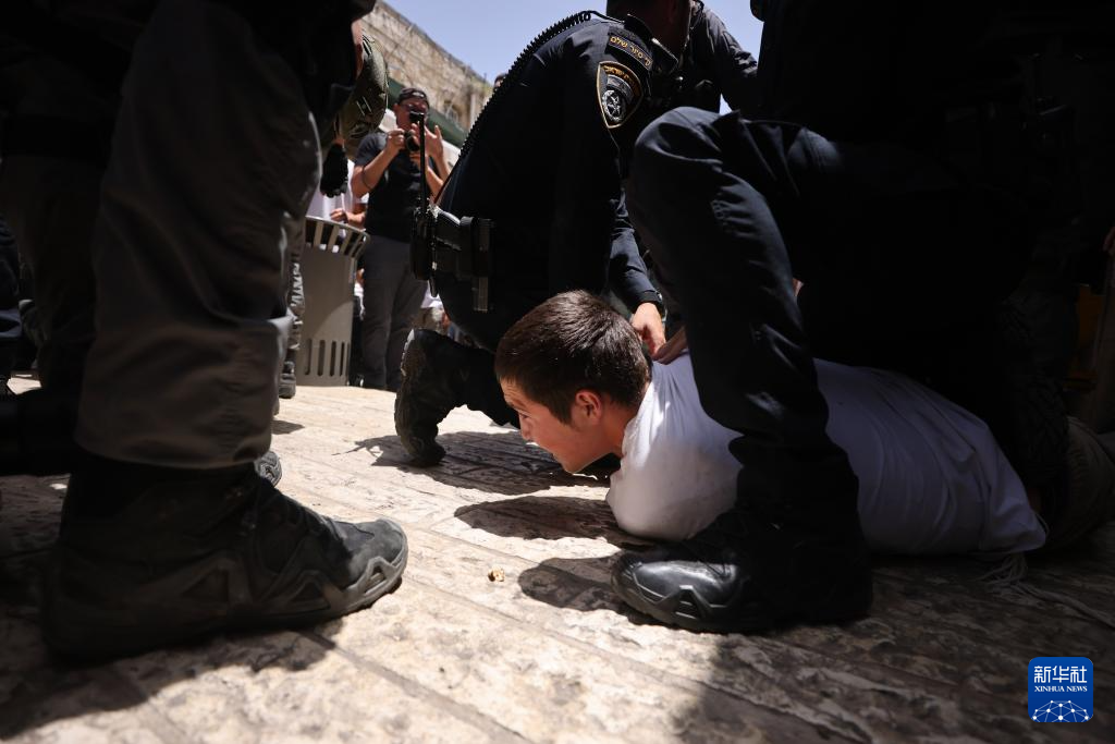 5月26日,在耶路撒冷老城举行的“耶路撒冷日”游行期间,以色列警察控制一名参加游行的以色列极右翼人士。