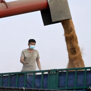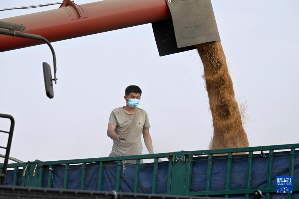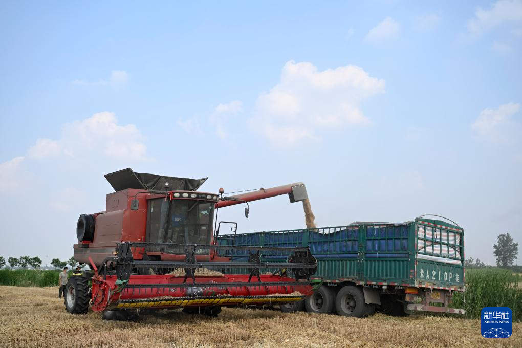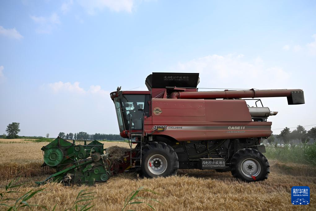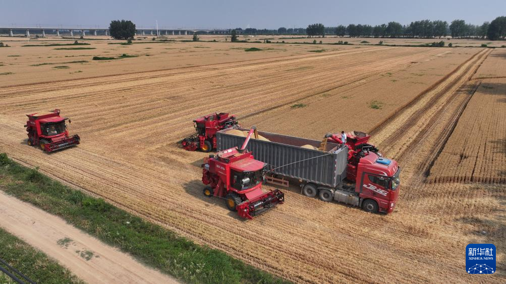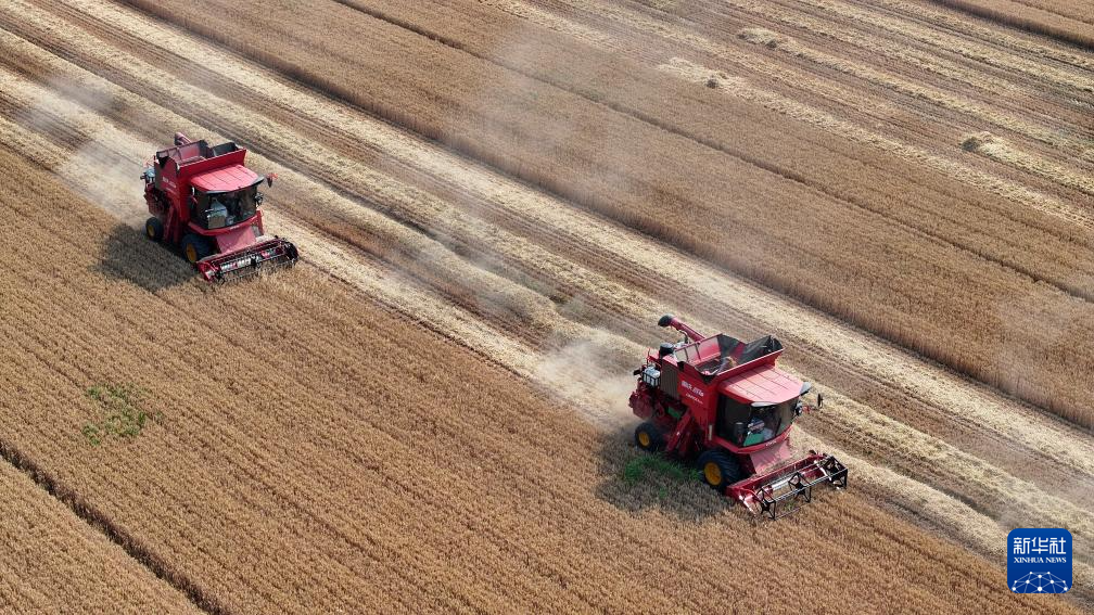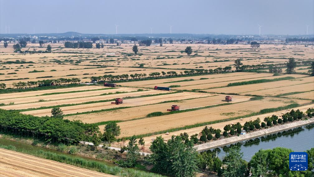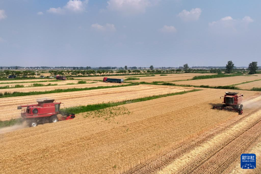 “三夏”时节,安徽省蚌埠市五河县的110余万亩小麦陆续成熟,当地农民抢抓晴好天气收割小麦。收割机、运粮车、秸秆打捆机在田间往来穿梭,一派繁忙景象。
