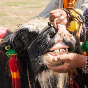 5月29日,工作人员通过检查牦牛牙口判断其是否具备参赛资格。