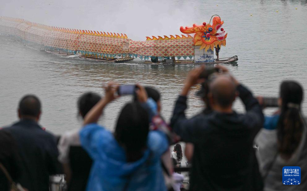 5月31日,在重庆市铜梁区安居古城,观众观看“神龙揽胜”游江表演。