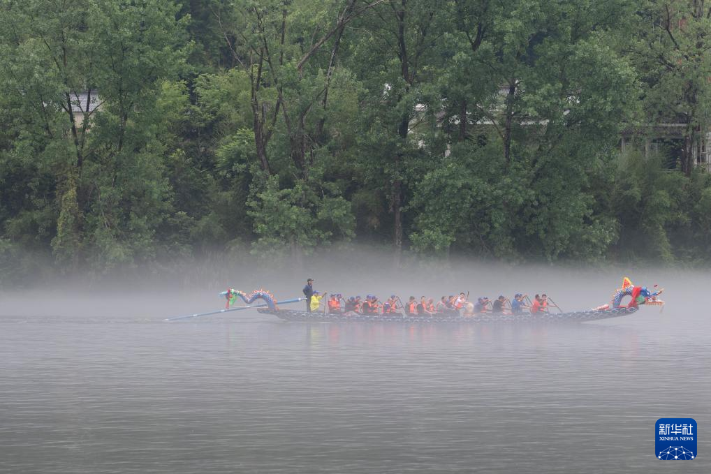 5月29日,一支龙舟队在桃花潭风景区划龙舟。桃花潭南临黄山、西接九华山,与太平湖相连,因李白的《赠汪伦》而闻名。