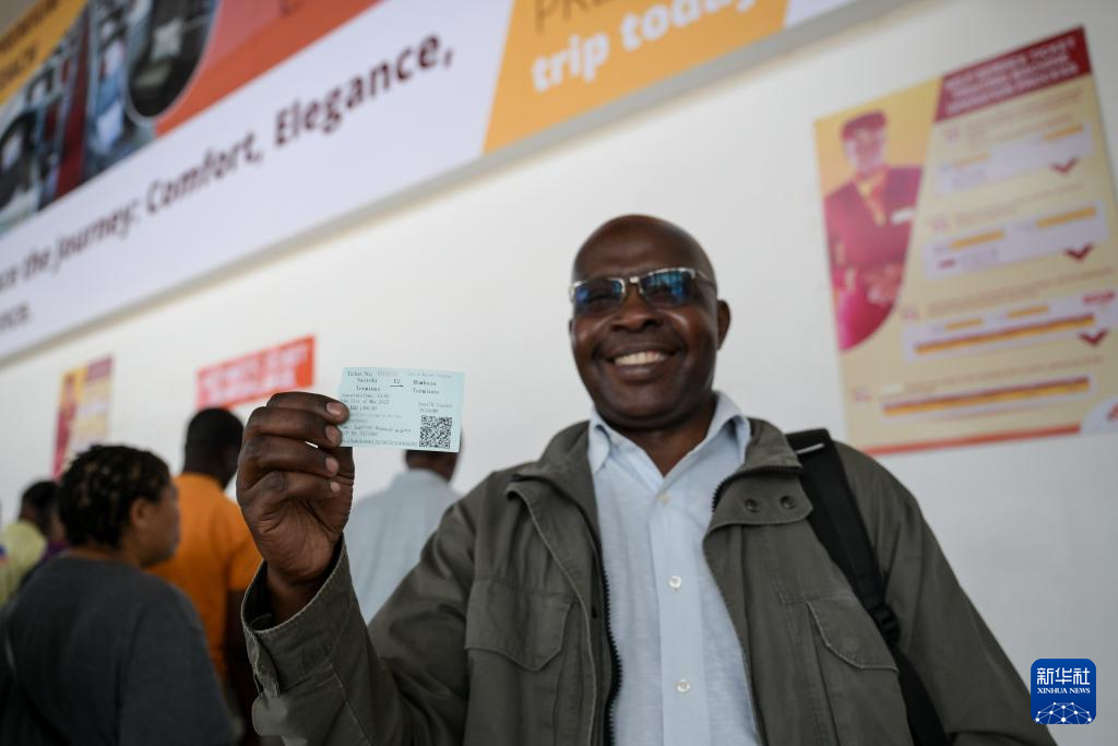 5月31日,在蒙内铁路内罗毕站,一名前往蒙巴萨的乘客展示车票。