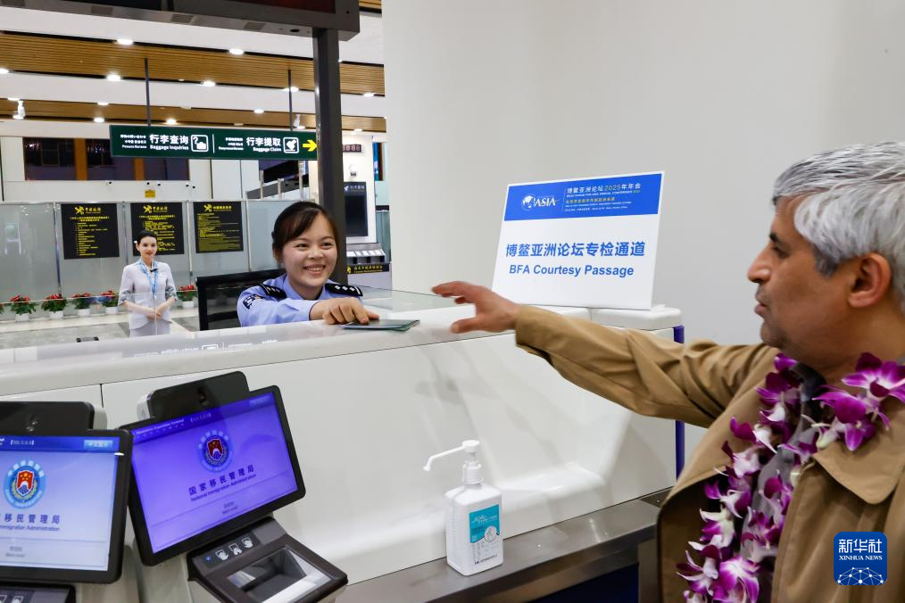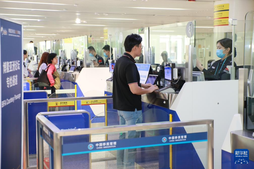 在海口美兰国际机场,海口出入境边防检查总站美兰边检站开设专用通道保障博鳌论坛年会嘉宾快速通关(3月24日摄)。