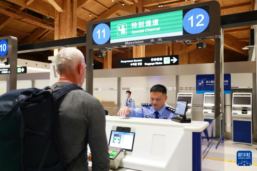 在海南三亚凤凰国际机场,海口出入境边防检查总站凤凰边检站移民管理警察为参加2025LPGA蓝湾大师赛的运动员、工作人员办理入境手续(3月3日摄)。