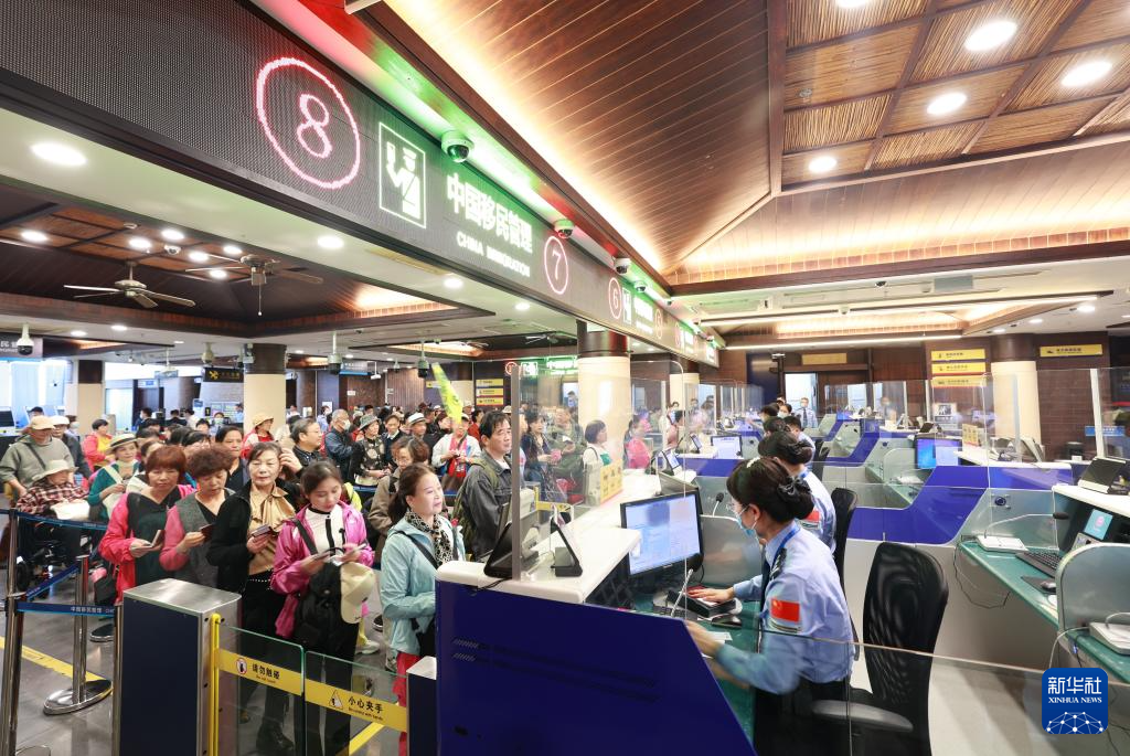 海口出入境边防检查总站三亚边检站移民管理警察在为“鼓浪屿”号邮轮旅客办理通关手续(1月3日摄)。当日,“鼓浪屿”号邮轮搭载456名旅客停靠三亚凤凰岛国际邮轮港,这是三亚口岸2025年首艘入境的国际邮轮。