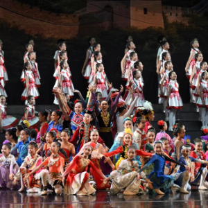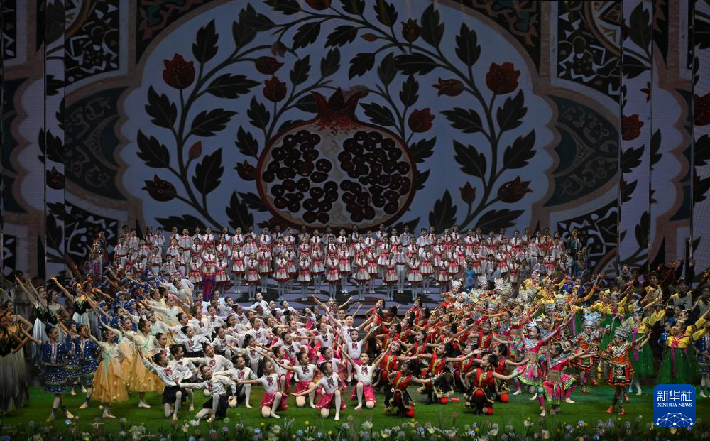 5月31日,北京师范大学附属中学金帆舞蹈团在《丝路风景线》中表演。