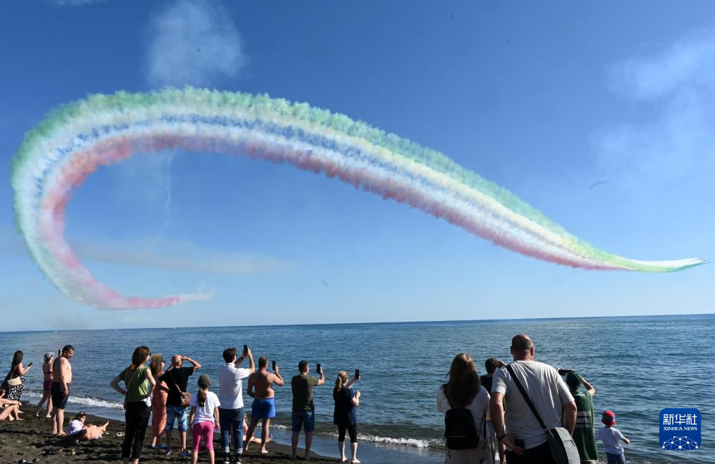 6月1日,人们在意大利罗马附近的拉迪斯波利观看飞行表演。