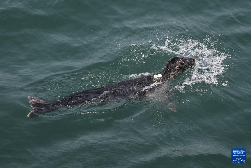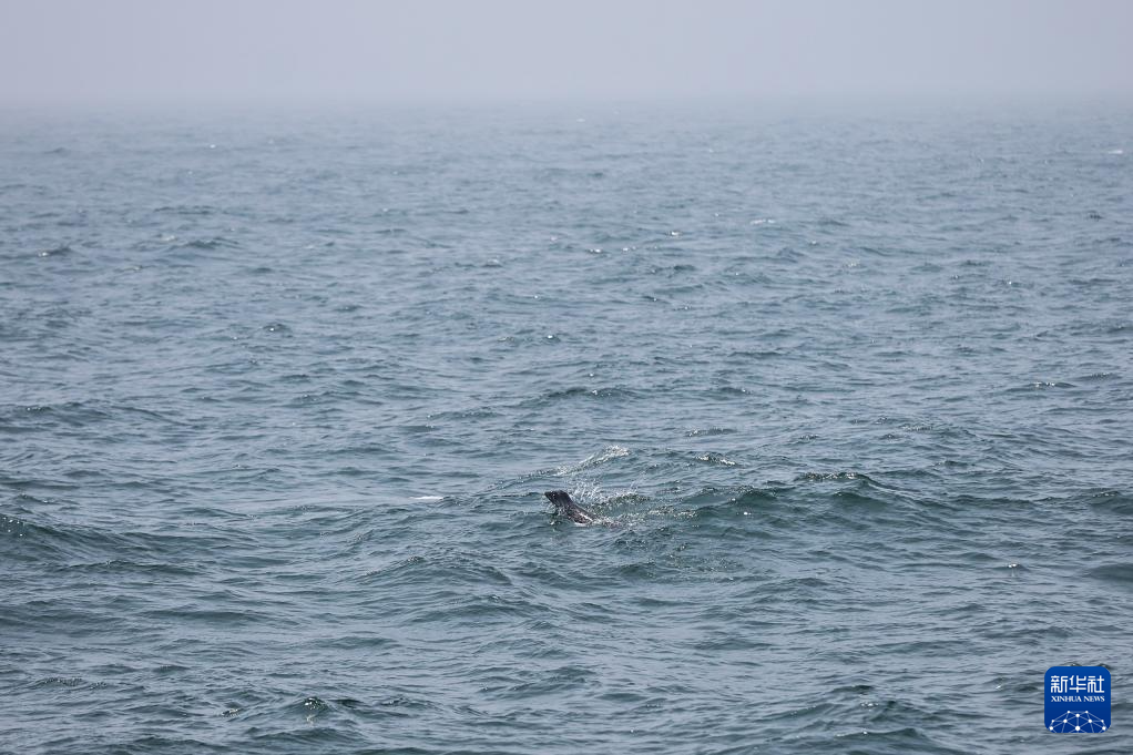 6月6日,被放归的西太平洋斑海豹在大连市三山岛附近海域活动。