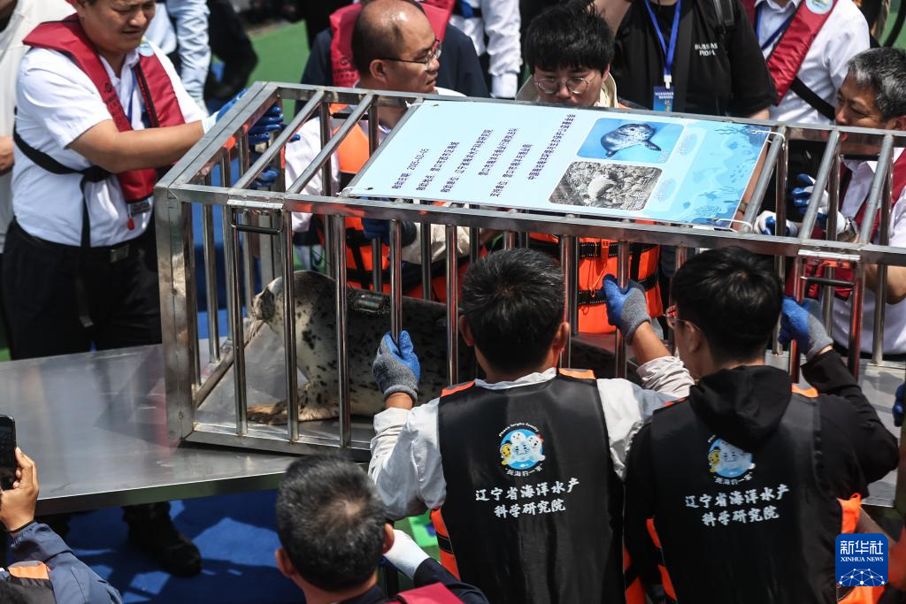 6月6日,工作人员在放归西太平洋斑海豹。