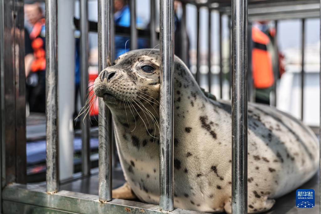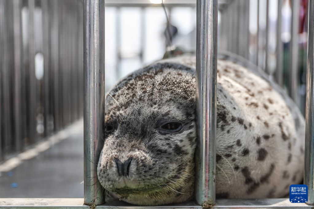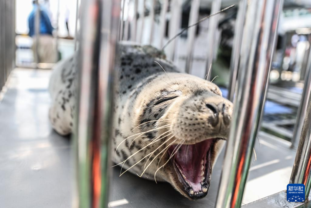 这是6月6日拍摄的准备放归的西太平洋斑海豹。