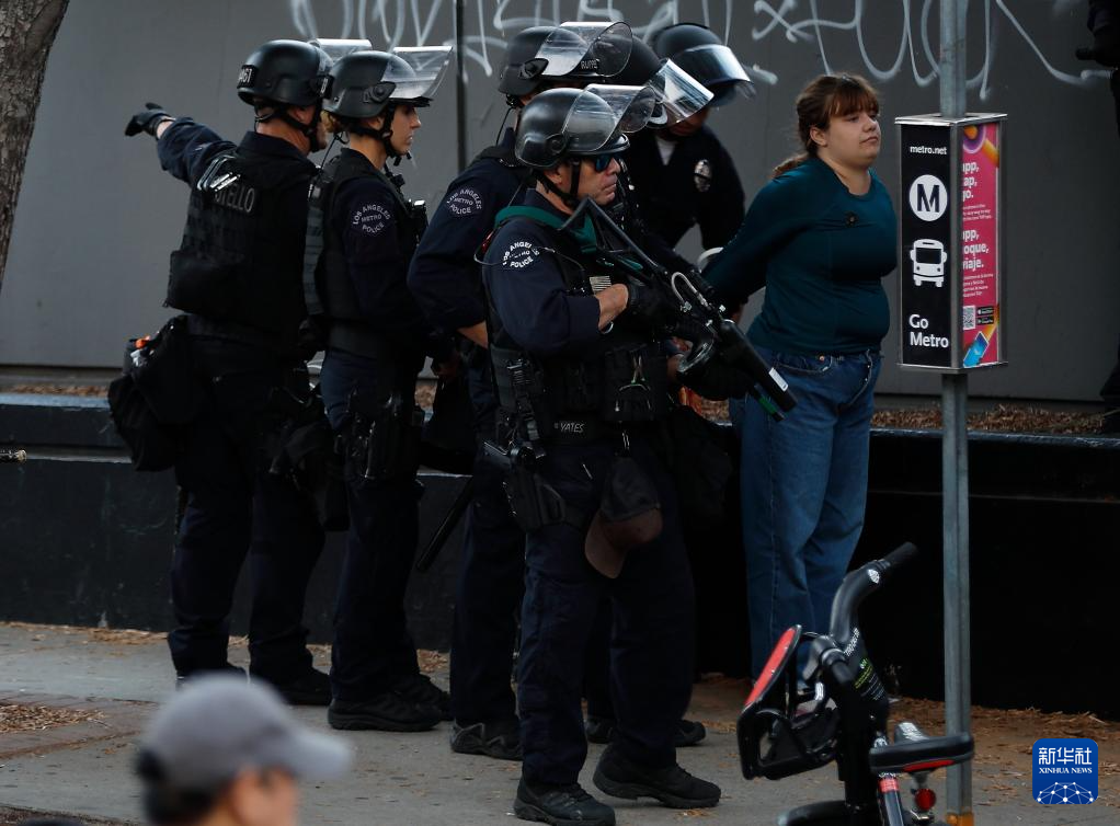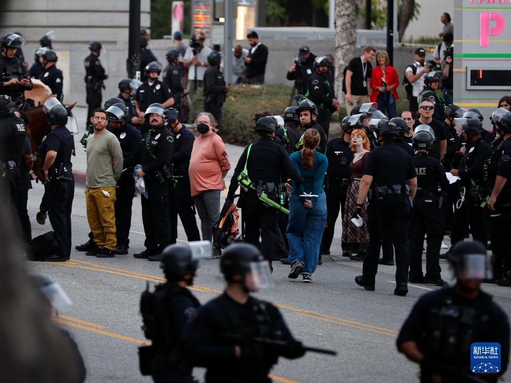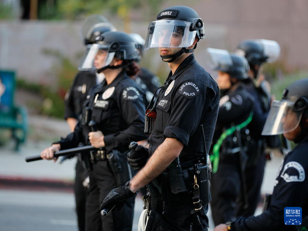 美国洛杉矶市街头抗议11日进入第六夜,警方在市中心等地点严阵以待,紧张气氛持续。洛杉矶警方当天证实,前一夜宵禁过程中逮捕200余人。洛杉矶市长巴斯11日傍晚宣布从当日晚8时至次日6时继续在市区实行宵禁。