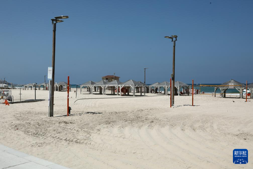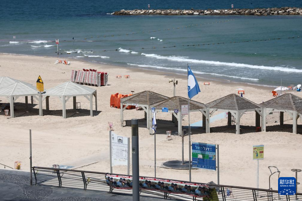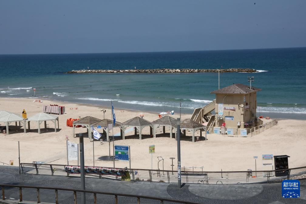 这是6月13日在以色列特拉维夫拍摄的一处空旷的海滩。