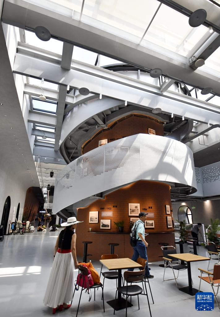 6月11日,游客在砖窑里园区轮窑内部改造的文化休闲空间参观。