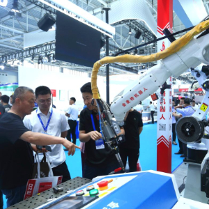 6月18日,参观者在2025青岛国际机床展览会上了解激光焊接机器人。