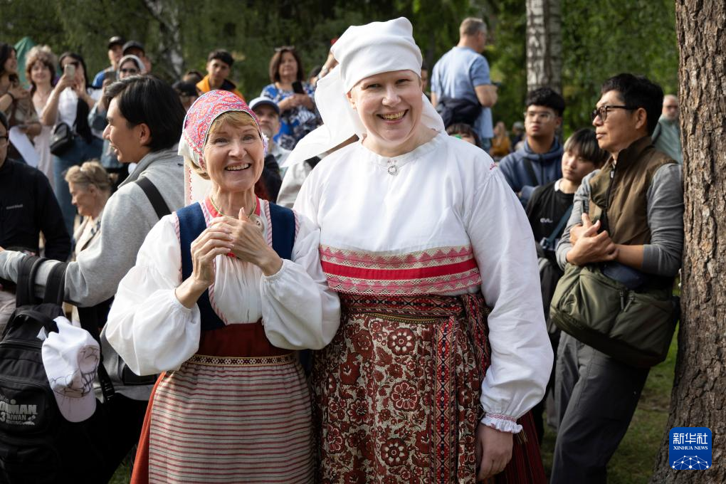 6月20日,在芬兰首都赫尔辛基伴侣岛举办的仲夏节前夜庆典上,人们欣赏身着传统服饰的演出人员表演舞蹈。