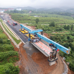 当日,在位于湖南省永州市的邵(阳)永(州)高铁柘刺坪特大桥施工现场,由中铁五局承建的邵永高铁二标段成功架设全线首孔箱梁,标志着邵永高铁全线箱梁架设工程正式启动。