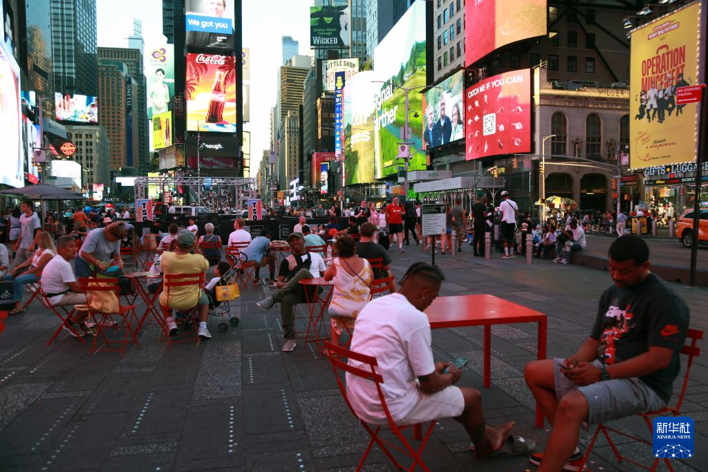 6月24日,人们在美国纽约时报广场休闲。