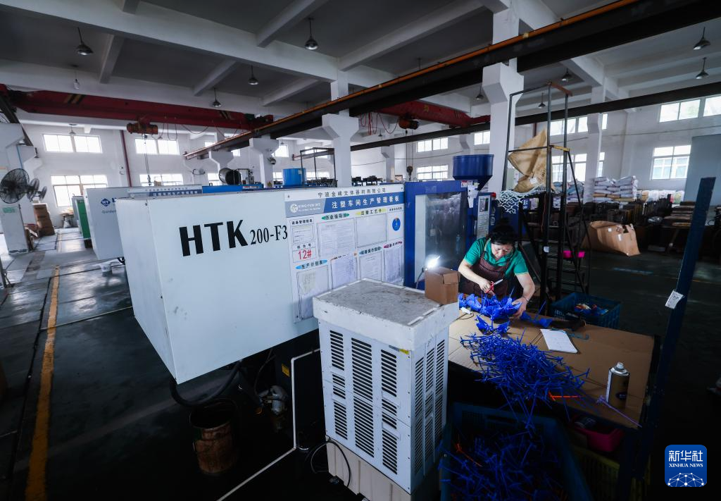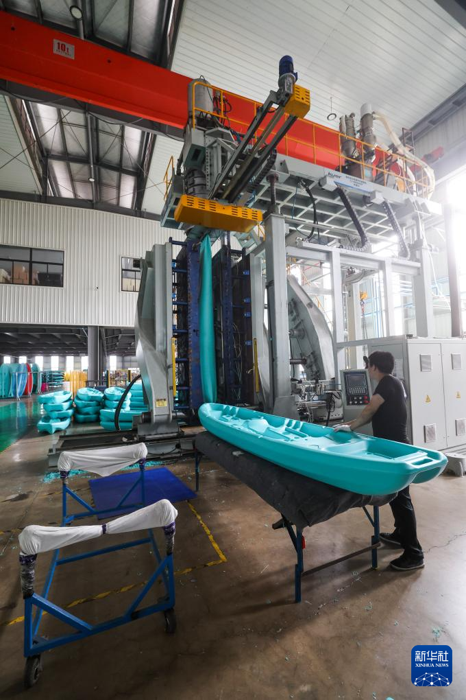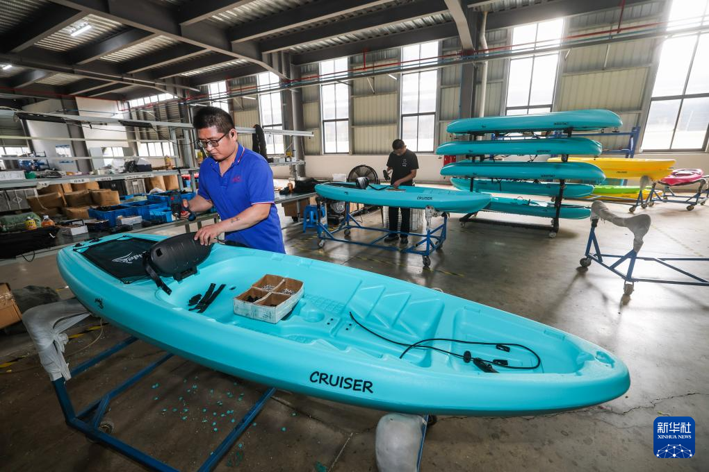 6月25日,在位于慈溪市的浙江酷尔智能科技有限公司的车间内,工人在加工出口的皮划艇。