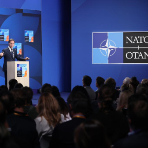 6月25日,在荷兰海牙,北约秘书长吕特在北约峰会期间出席新闻发布会。