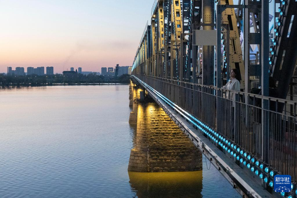 人们在哈尔滨市被称作“老江桥”的滨州铁路桥上游玩(2025年4月22日摄)。