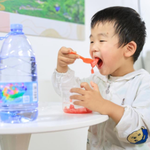 7月2日,一名小朋友在南京北极岩人防工程里吃西瓜。