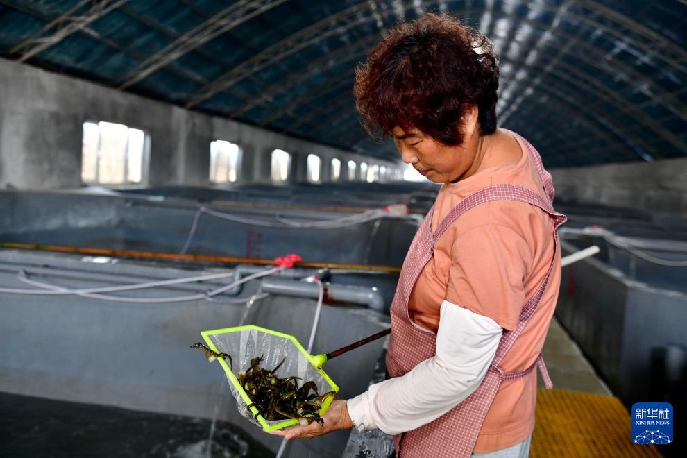 7月4日,在日照市东港区涛雒镇膨腹海马养殖基地,工作人员在展示膨腹海马。
