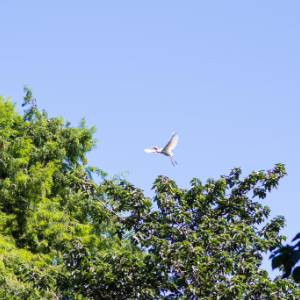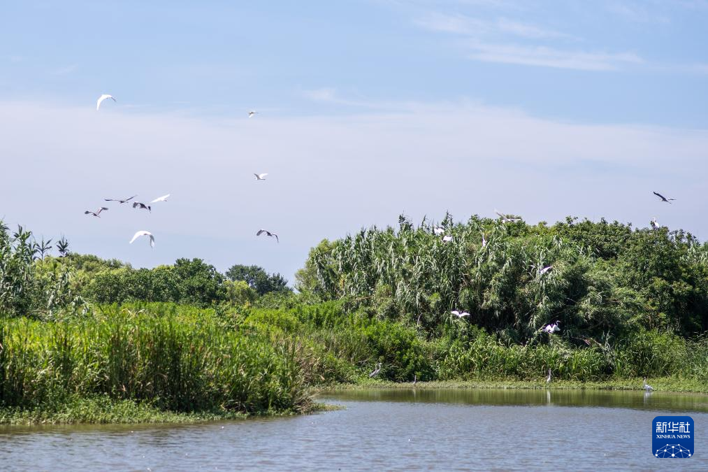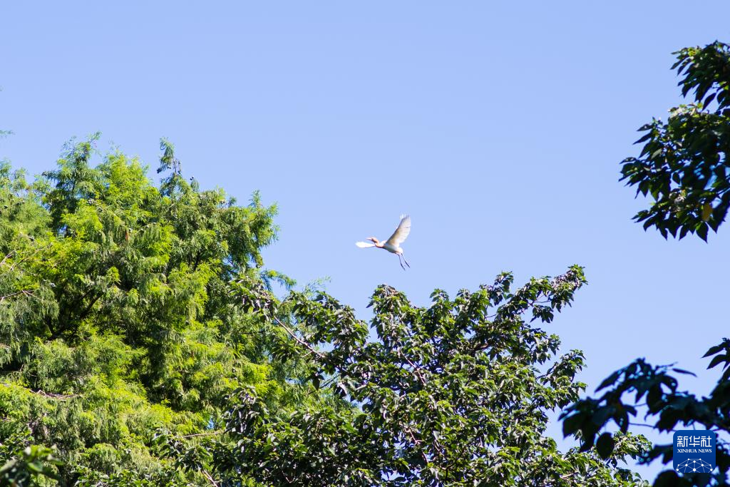 白鹭飞翔在杭州湾国家湿地公园内(7月5日摄)。