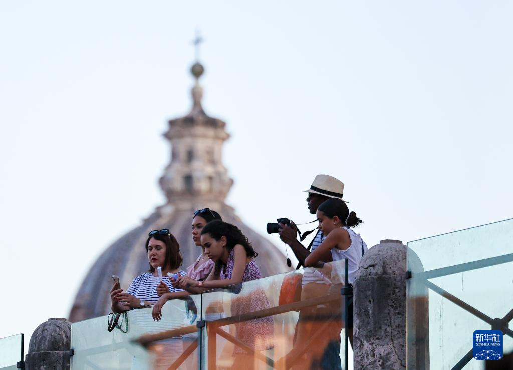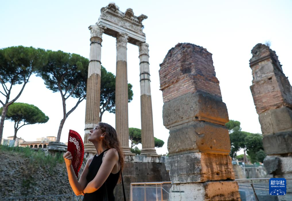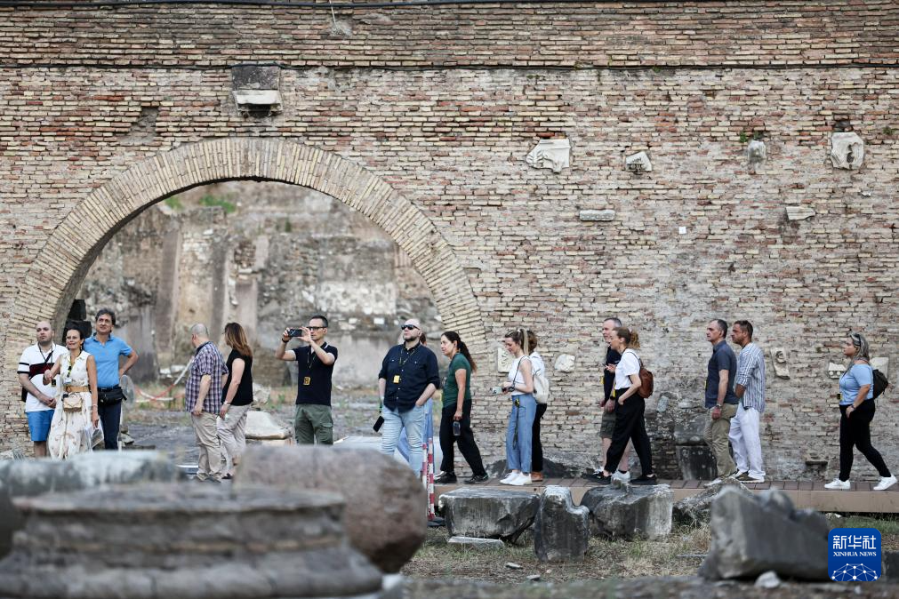 7月5日傍晚,在意大利罗马,游客在古罗马广场参观。