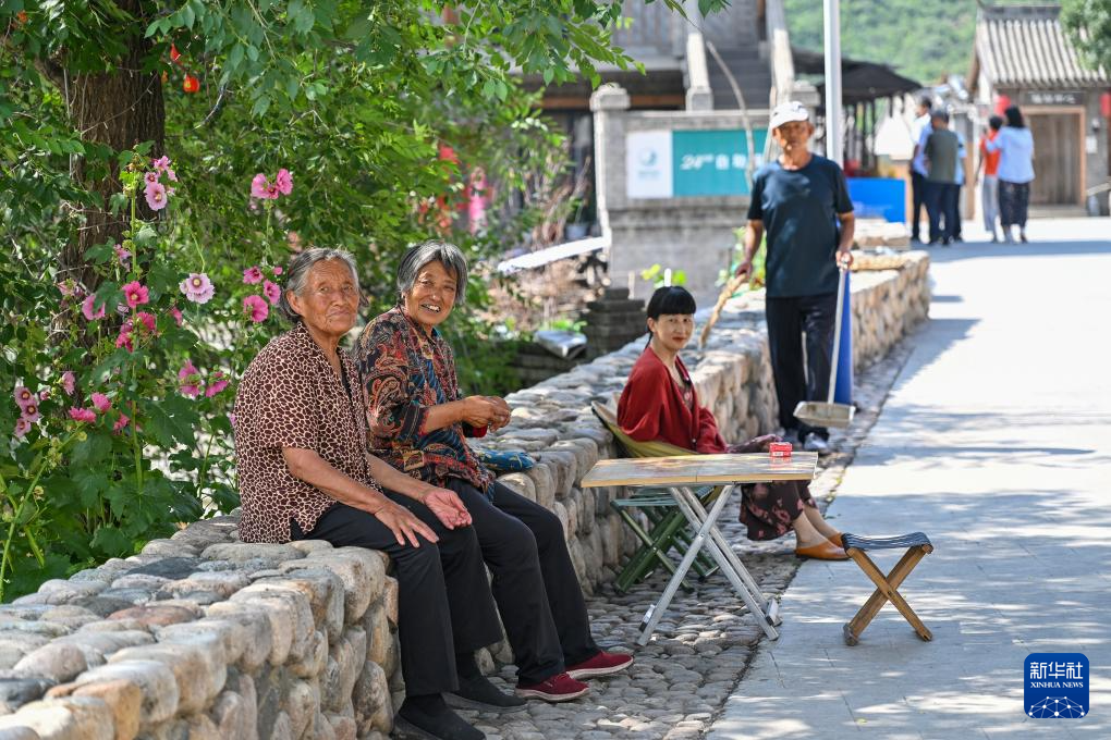 7月4日,阜平县骆驼湾村村民在树下乘凉。