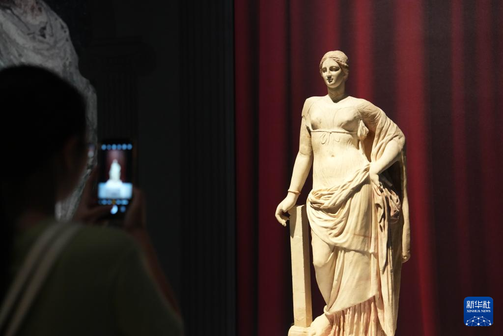 7月8日,参观者在湖南博物院“遇见庞贝:永恒之城”展览拍摄维纳斯女神雕塑。